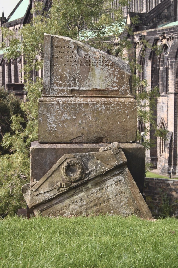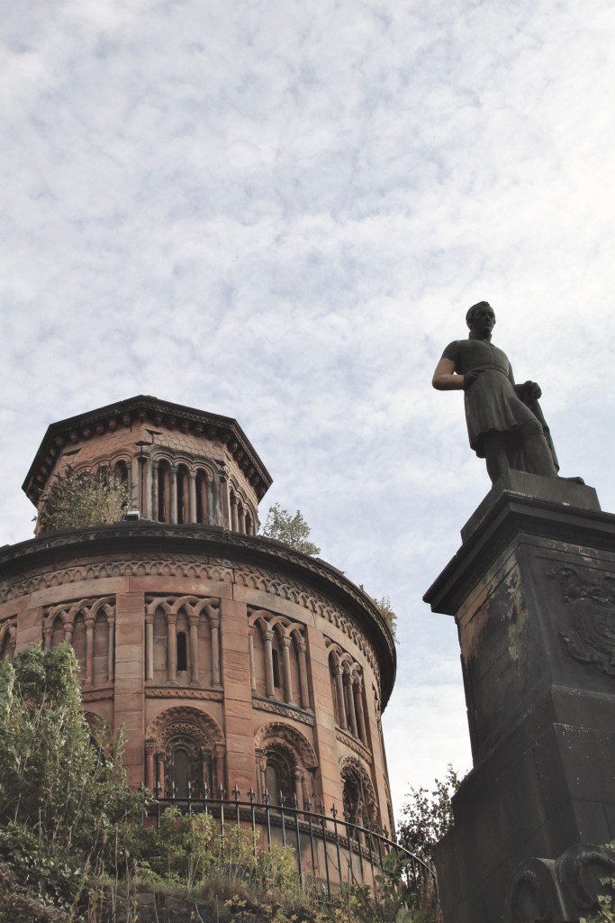 The next day we went to see some more literal memorials. The Glasgow Necropolis is a strange place, if I’m honest. The paths wind breathlessly up a hill, lined with dull stones in a multitude of greys. This is the antithesis of Old Tom Morris saluting the passing museum guests. This is a performance, a most silent and still song and dance.